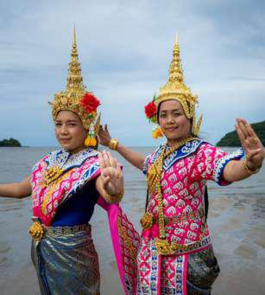 - ทดลองแต่งชุดและรำละครเท่งตุ๊ก