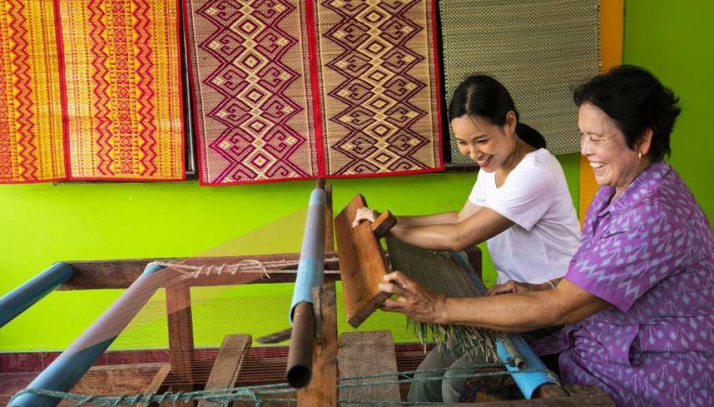 - เรียนรู้การทอผ้า การทอเสื่อกก