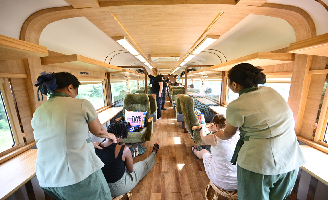 แนวคิดการเชื่อมโยงปลายทางสองเมืองในทริปเดียว เพื่อมอบประสบการณ์ผสมผสานระหว่างพลังความเป็นเมืองที่มีชีวิตชีวาไม่หยุดนิ่งของกรุงเทพฯ กับเสน่ห์เรียบง่ายของชายฝั่งหัวหิน ไฮไลต์คือรถไฟสาย “Royal Blossom” ที่นำผู้ร่วมงาน TIME 2025 จากหัวหินกลับสู่กรุงเทพฯ ให้สัมผัสบริการพิเศษของการรถไฟแห่งประเทศไทย ที่สร้างความประทับใจด้วยที่นั่งกว้างปรับเอนได้ พอร์ต USB โต๊ะทำงาน มินิบาร์ ภายในหรูหรา หน้าต่างบานใหญ่ชมวิว และพื้นที่สำหรับพบปะ พักผ่อน หรือทำกิจกรรมร่วมกัน