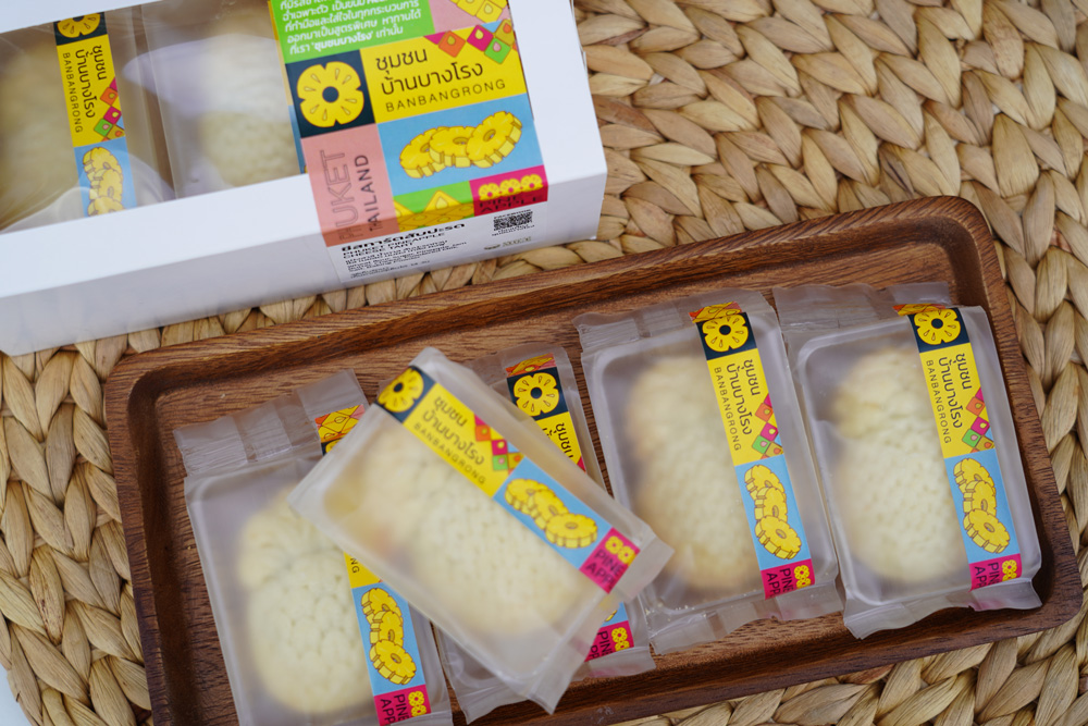 ภาคใต้ – กระเป๋าผ้าลายสายแร่ จากชุมชนบ้านนาคา ขนมหน้าแตก จากชุมชนเมืองเก่าภูเก็ต พายสับปะรด จากชุมชนบ้านบางโรง