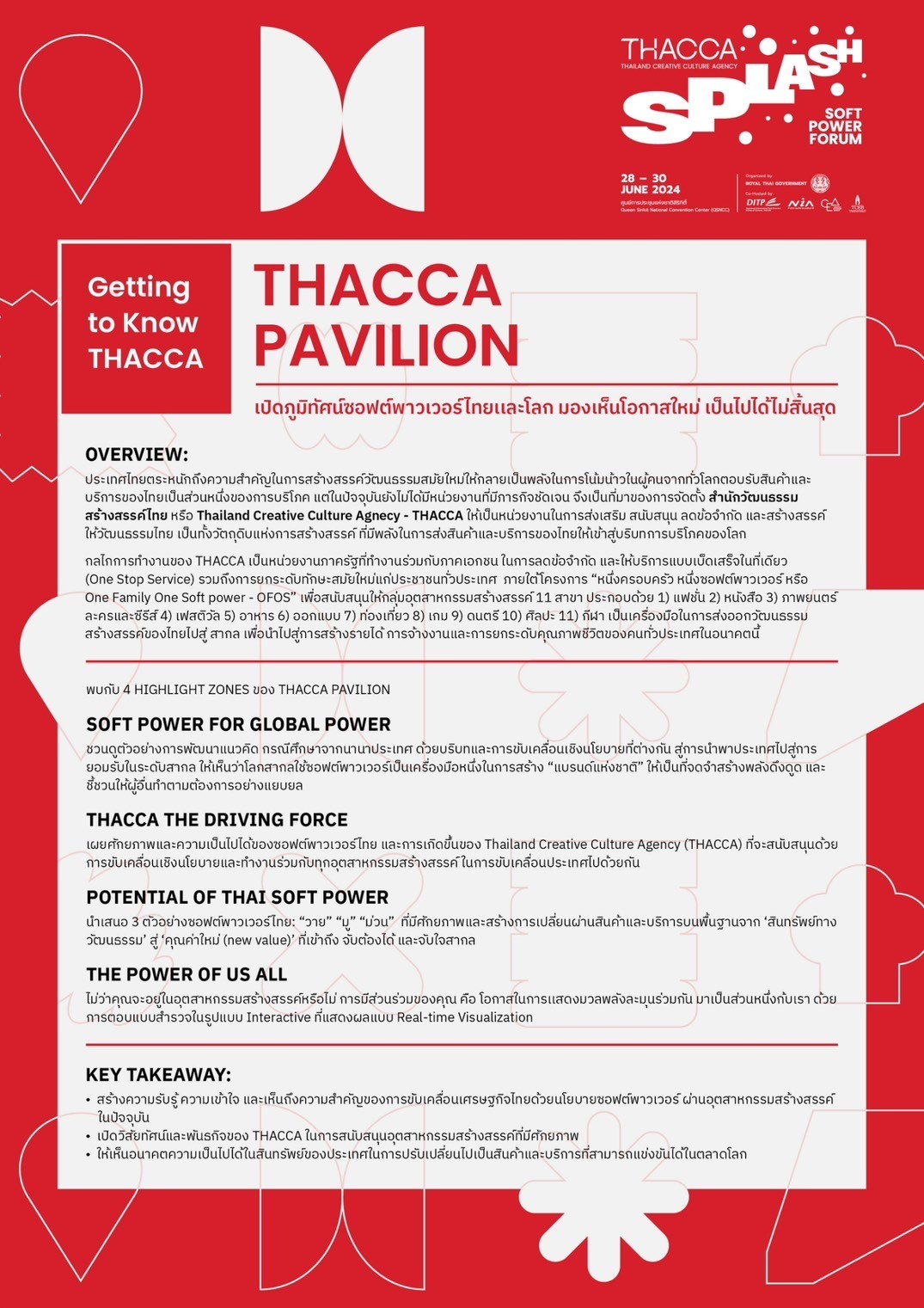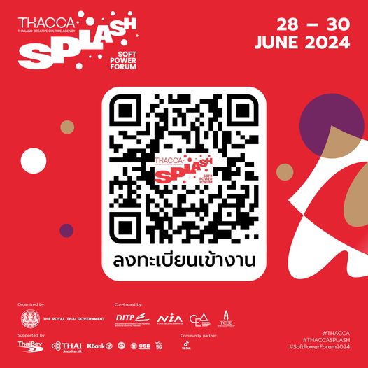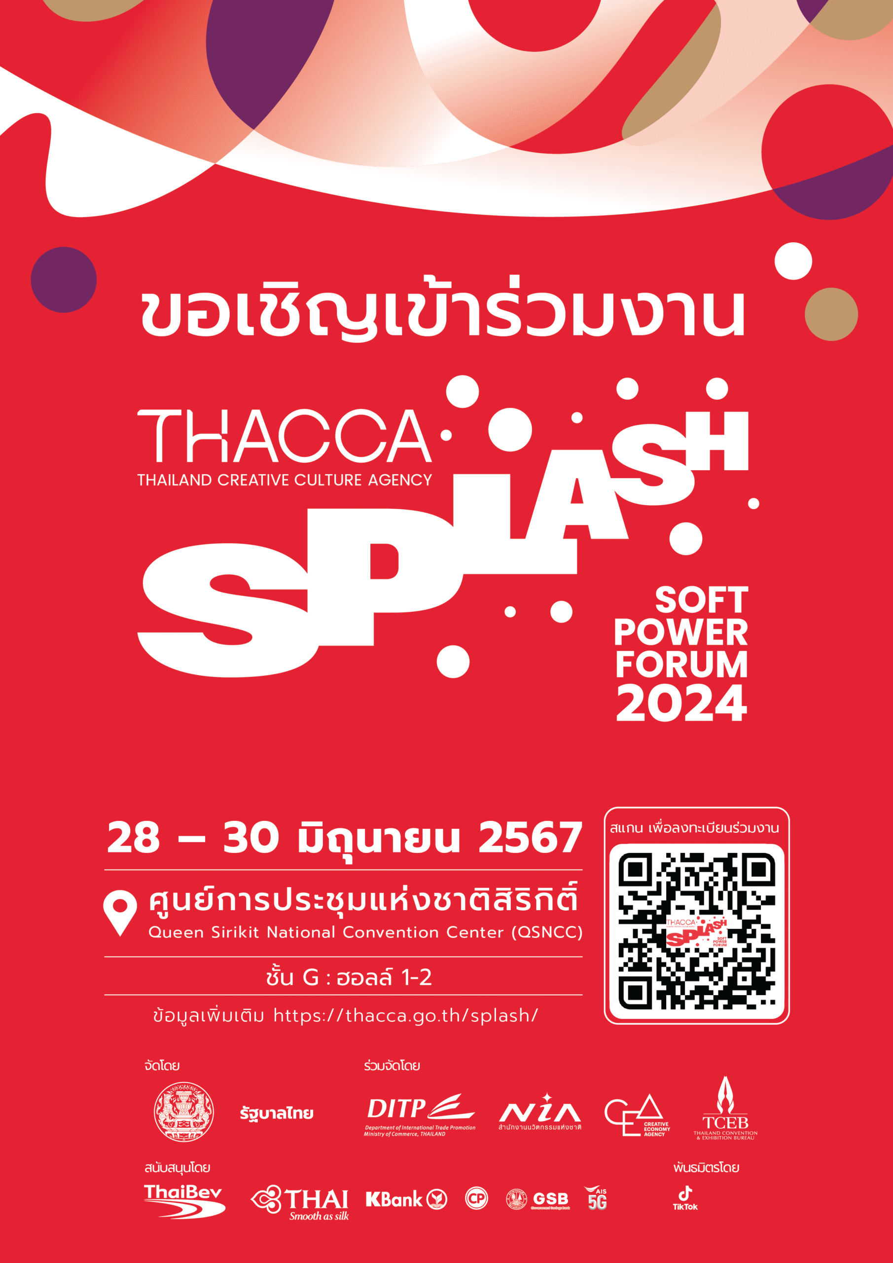 ลงทะเบียนเข้าร่วมงาน THACCA SPLASH : Soft Power Forum 2024 ได้ที่ https://general.icv-allservice.com