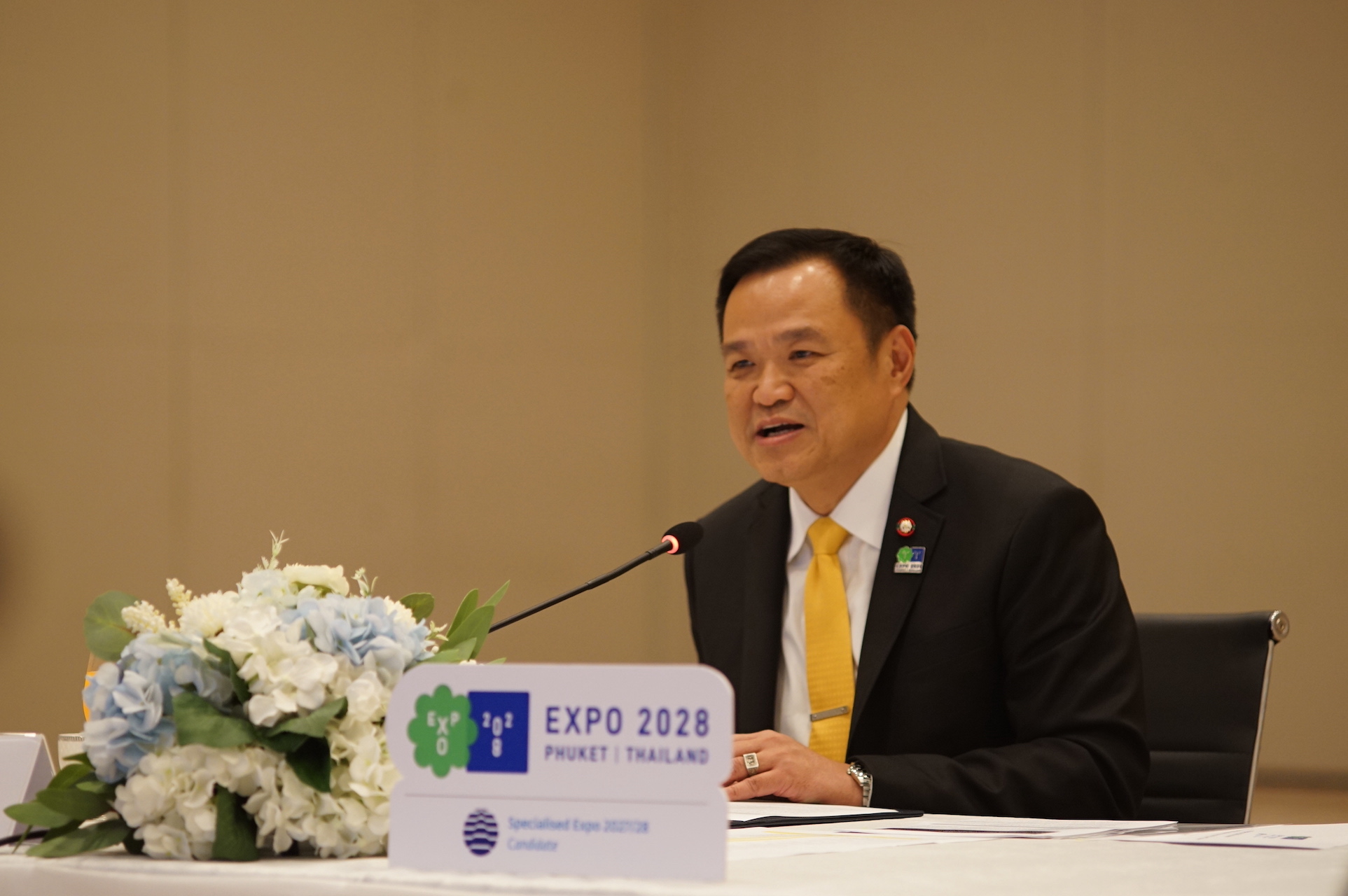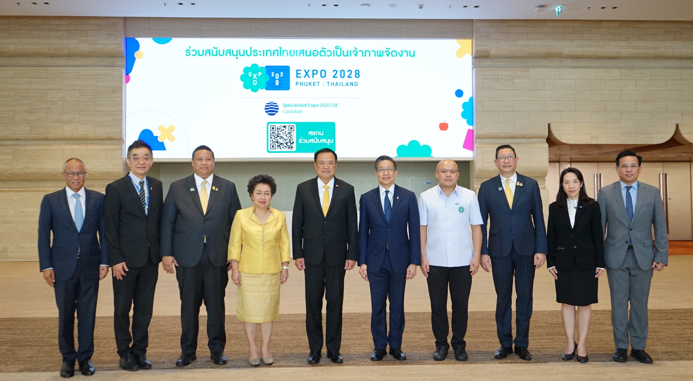 นายอนุทิน ชาญวีรกูล รองนายกรัฐมนตรี และประธานคณะกรรมการขับเคลื่อนการเสนอตัวเป็นเจ้าภาพจัดงาน Expo 2028 Phuket Thailand (Thailand Candidature Committee) กล่าวเปิดการประชุมสร้างความมั่นใจให้ผู้นำภาคเอกชนถึงการสนับสนุนอย่างเต็มที่ของรัฐบาลไทยในการเสนอตัวเป็นเจ้าภาพจัดงาน Expo 2028 Phuket Thailand ภายใต้กรอบงบประมาณที่ได้รับการอนุมัติจากคณะรัฐมนตรีแล้วกว่า 4,180 ล้านบาท พร้อมชี้ประโยชน์สำคัญ 4 ด้านหลักที่ประเทศไทยจะได้รับหากได้รับสิทธิการจัดงาน คือ 1. ด้านเศรษฐกิจ จะมีเงินหมุนเวียนทางเศรษฐกิจในประเทศจากนักเดินทางทั้งคนไทยและต่างชาติรวมกว่า 4.92 ล้านคนจาก 106 ประเทศ มีเงินสะพัดกว่า 49,231 ล้านบาท และมูลค่าเพิ่มผลิตภัณฑ์มวลรวมในประเทศ (GDP) มากกว่า 39,357 ล้านบาท 2. ด้านการพัฒนาเมือง ของจังหวัดภูเก็ต และจังหวัดในกลุ่มอันดามันคลัสเตอร์ ได้แก่ กระบี่ ตรัง พังงา ภูเก็ต ระนอง และสุราษฎร์ธานี รวมถึงโอกาสการกระจายรายได้ของนักเดินทางต่างชาติในการจับจ่ายใช้สอยไปยังทุกพื้นที่ทั่วประเทศ 3. ด้านการส่งเสริมภาพลักษณ์ของประเทศไทย ในการเป็นจุดหมายปลายทางด้าน “ศูนย์กลางสุขภาพนานาชาติ หรือ Medical Hub ของภูมิภาคเอเชียตะวันออกเฉียงใต้และเอเชียใต้” โดยจะก้าวสู่การเป็น “ศูนย์การท่องเที่ยวเชิงสุขภาพระดับโลก” ช่วยยกระดับทุกพื้นที่ทั่วประเทศให้เป็นเมืองด้านการท่องเที่ยวเชิงสุขภาพ 4. ด้านการบริหารและพัฒนาพื้นที่หลังการจัดงาน ในกรณีของจังหวัดภูเก็ต พื้นที่ อาคาร และสิ่งปลูกสร้างทั้งหมด จะพัฒนาเป็นศูนย์บริการทางการแพทย์และสาธารณสุขระดับนานาชาติครบวงจร ศูนย์อภิบาลผู้สูงอายุนานาชาติ ศูนย์ใจรักษ์ และศูนย์เวชศาสตร์ฟื้นฟูครบวงจร ซึ่งก่อให้เกิดการพัฒนาทั้งด้านการแพทย์ สุขภาพ และความเป็นอยู่ที่ดี ภายใต้การดูแลของโรงพยาบาลวชิระ ภูเก็ต นอกจากนั้นยังมีการพัฒนาพื้นที่ให้เป็นศูนย์ประชุมนานาชาติ และ Ecological Park อีกด้วย